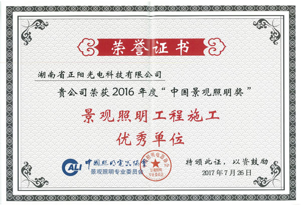 • 景觀照明工程施工優(yōu)秀單位