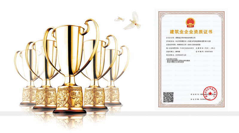 湖南省正陽(yáng)光電科技有限公司是一家從事亮化工程及大型燈光藝術(shù)的設(shè)計(jì)、制作、安裝和維護(hù)于一體的專業(yè)化公司。公司資質(zhì)齊全、管理嚴(yán)謹(jǐn)、技術(shù)先進(jìn)、實(shí)力雄厚,取得了城市及道路照明工程專業(yè)承包壹級(jí)資質(zhì)、照明工程設(shè)計(jì)專項(xiàng)甲級(jí)資質(zhì)、機(jī)電工程施工總承包貳級(jí)資質(zhì)、施工勞務(wù)等資質(zhì)、國(guó)家高新技術(shù)企業(yè)、國(guó)家“重質(zhì)量·守誠(chéng)信”示范企業(yè)。
